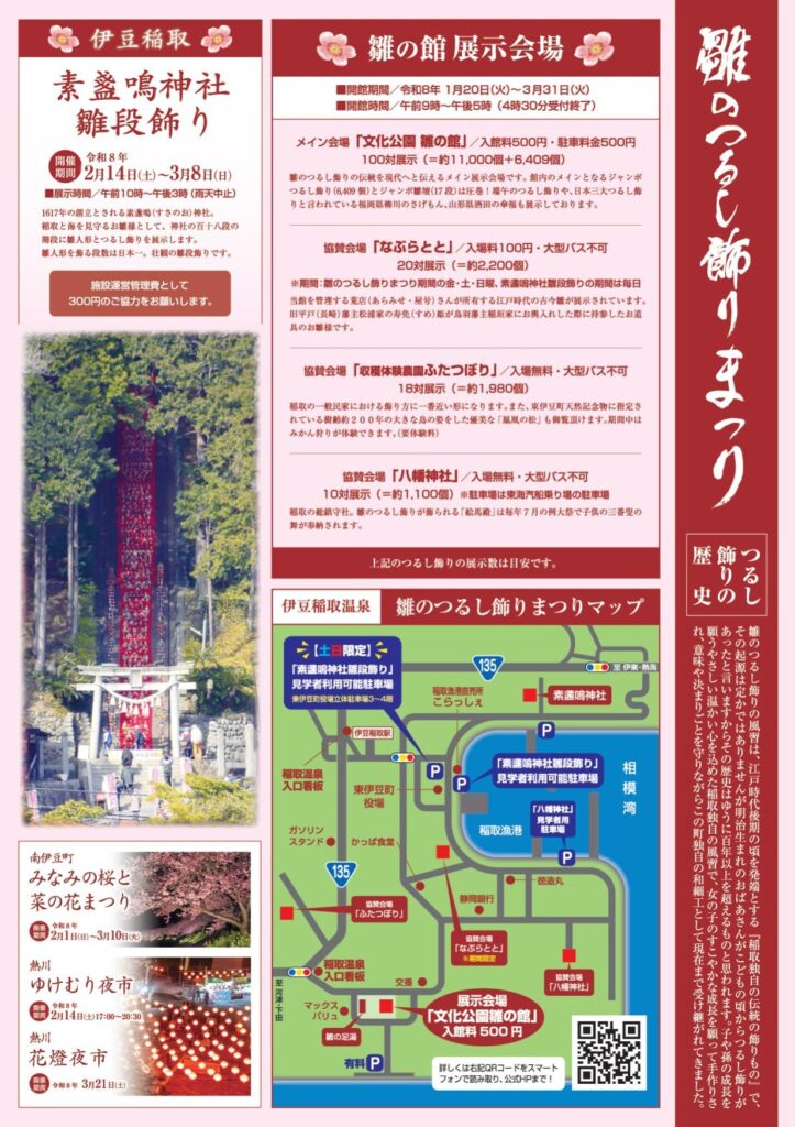 雛のつるし飾り期間中は文化公園雛の館ほか4か所の展示会場をオープン。(詳しくは当HPでご確認ください...